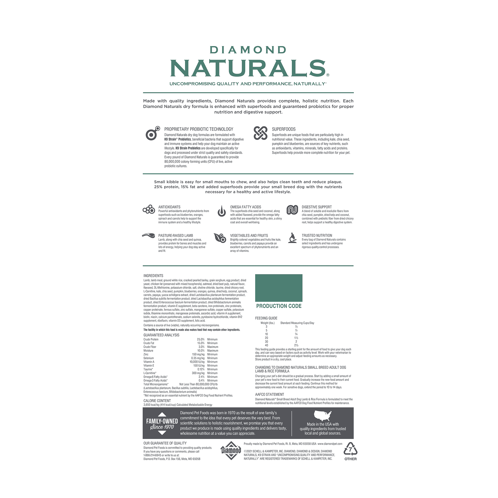 ส่วนผสม เนื้อแกะ,เนื้อแกะป่น,ข้าวจ้าวป่น,เพิร์ลบาร์เล่ย์,ข้าวฟ่างเมล็ด,ไข่,ยีสต์แห้ง,ไขมันไก่,โอ๊ตมีลเยื่อบีทแห้ง,แฟลคซีด,กลิ่นรสธรรมชาติ,เกลือ,โพแทสเซียมคลอไรด์,ดีแอล-เมไทโอนีน,ทอรีน,รากชิคอรี, ผักเคล,เมล็ดเจีย,ฟักทอง, บลูเบอร์รี่,ส้ม ,ควีนัว, สาหร่ายทะเลแห้ง, มะพร้าว,ผักขม, แครอท, มะละกอ, สารสกัด ยัคค่าชิดิจิลา, แลคโตบาซิลลัส ,วิตามินอีเสริมเบต้าแคโรทีน,เหล็ก ,สังกะสี ,ทองแดง,ซัลเฟต, คอปเปอร์ซัลเฟตโพแทสเซียมไอโอไดด์,วิตามินบี(วิตามิน บี1), แมงกานีส, วิตามินซี, วิตามินอาหารเสริมไบโอติน, ไนอาซินแคลเซียมแพนโทธีซัลเฟตแมงกานีสโซเดียม,ไพริดอกซิไฮโดรคลอไร (วิตามินบี 6), อาหารเสริมวิตามินบี 12, ไรโบฟลาวิน(วิตามินบี 2) ,วิตามินดีเสริมกรดโฟลิค